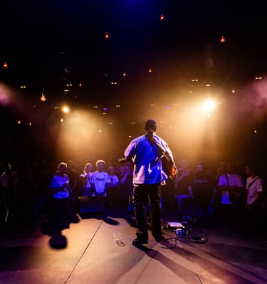 Transforming spaces with captivating lighting designs for performances.